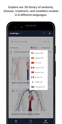 Ar BioDigital Human jūs iegūstat piekļuvi vairāk nekā 700 detalizētiem 3D anatomijas un veselības stāvokļu modeļiem, kas aptver visas galvenās ķermeņa sistēmas un specialitātes. Atklājiet patieso interaktīvo 3D brīvību, ļaujot griezt, pietuvināt, zīmēt uz modeļiem, veikt disekcijas un koplietot atklājumus no jebkuras perspektīvas – atšķirībā no statiskām attēlu lietotnēm. Pielāgojama bibliotēka, intuitīvs interfeiss un astoņu valodu atbalsts nodrošina nevainojamu mācīšanās pieredzi. Vadošās medicīnas skolas un veselības sistēmas visā pasaulē uzticas BioDigital Human, jo ir pierādīts, ka tas par 43% uzlabo mācību materiāla atcerēšanos un par 16% uzlabo zināšanu novērtējumu, salīdzinot ar tradicionālajām metodēm.