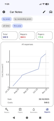 Neaizmirstiet vairs par eļļas maiņu vai filtru nomaiņu! Lietotne darbojas kā jūsu personīgais atgādinājumu centrs, ļaujot iestatīt brīdinājumus gan pēc datuma, gan pēc nobraukuma. Tā automātiski aprēķinās gaidāmo nobraukumu un informēs jūs, kad pienāks laiks nākamajai apkopei vai apdrošināšanas pagarināšanai, nodrošinot, ka nekad nepalaidīsiet garām svarīgu termiņu. Turklāt, ja jūsu garāžā ir vairāk nekā viens transportlīdzeklis, šī platforma piedāvā pilnīgu atbalstu vairākām automašīnām. Pievienojiet visas savas automašīnas un skatiet detalizētas izdevumu diagrammas pa mēnešiem vai gadiem, kas vizuāli parāda, kur jūsu nauda aizplūst un kā uzturēšanas izmaksas mainās laika gaitā. Atsevišķi tiek attēloti nodokļi, sodi un apdrošināšana, palīdzot pieņemt labākus lēmumus par automašīnu īpašumtiesībām.
