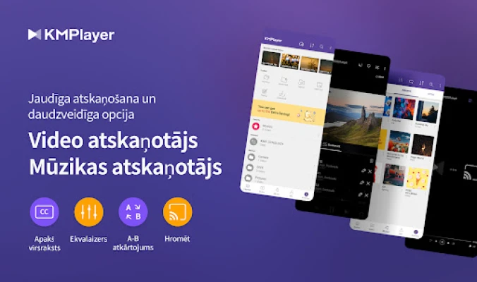 KMPlayer - Video atskaņotājs ir ideāls rīks, kas atskaņo visu veidu subtitrus un video. Izbaudiet HD, 4K un 8K UHD video kvalitāti viedtālruņos un planšetdatoros ar papildu funkcijām, piemēram, uznirstošo atskaņošanu un ekvalaizeru.