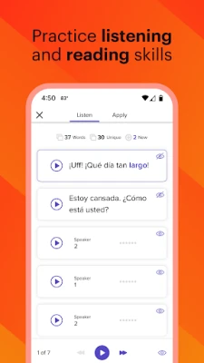 Mango mācību process ir balstīts uz efektīvu metodiku, ko izstrādājuši lingvistikas eksperti, garantējot augstas kvalitātes instrukcijas un reālus rezultātus. Jūs apgūsiet valodu no dzimtās valodas runātājiem, izmantojot tūkstošiem reālu ierakstu, kas uzlabo jūsu klausīšanās un izpratnes prasmes. Interaktīvas klausīšanās un lasīšanas aktivitātes, kopā ar personalizētām ikdienas atkārtošanas sesijām, nostiprinās iegūtās zināšanas. Pilnveidojiet izrunu ar fonētisko transkripciju, dabiskiem un lēniem izrunas piemēriem, kā arī mūsu unikālo izrunas salīdzināšanas rīku. Jūsu progress tiek sinhronizēts visās platformās, un, galvenais, mācību process ir pilnībā bez reklāmām, nodrošinot nepārtrauktu un koncentrētu apguvi jebkurā laikā un vietā.